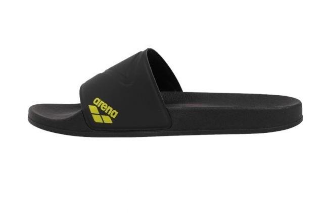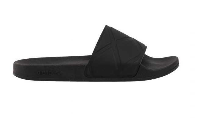 Klasyczne czarne klapki Arena z wytłoczonym logo marki to elegancka propozycja na basen, plażę oraz do noszenia na co dzień. Wykonano je z lekkiego i szybkoschnącego materiału zapewniającego wygodę. Są przyjazne dla skóry i dopasowują się do ruchów stopy.