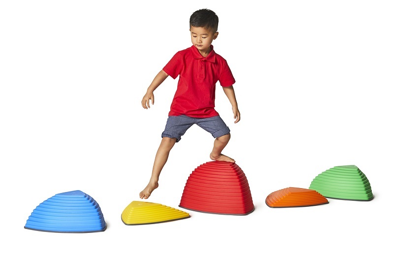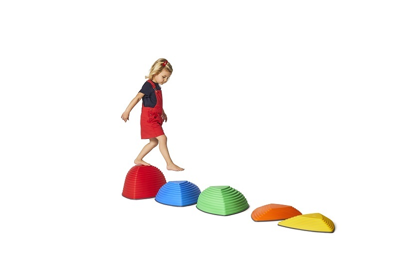 Zestaw "pagórków" o różnych wysokościach, które zachęcają dzieci do podejmowania aktywności mających na celu rozwijanie umiejętności oceny odległości czy poruszania się po przedmiotach o zróżnicowanych rozmiarach. Każdy element posiada przy podstawie gumowaną krawędź, która zapobiega ślizganiu się oraz chroni podłoże przed porysowaniem. Zestaw Gonge Hilltops dzięki swoim właściwościom doskonale sprawdzi się podczas zabawy i ćwiczeń, gwarantując wysoki poziom bezpieczeństwa zarówno dzieciom, jak i dorosłym.