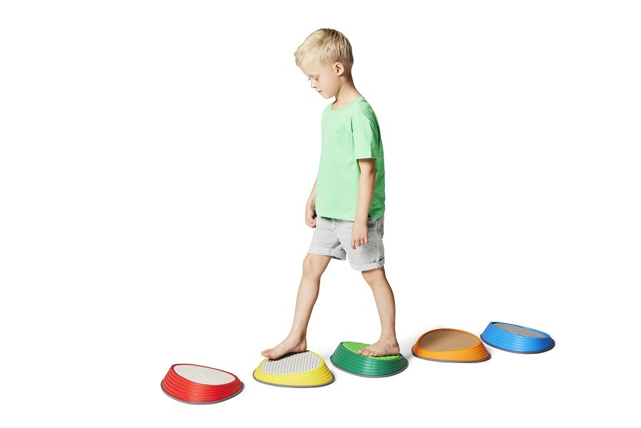 Zestaw pozwala w formie zabawowej rozwijać koordynację ruchową czy zdolności równoważne, jednocześnie stymulując stopy dziecka. Powierzchnia każdego elementu charakteryzuje się unikalną fakturą a w konsekwencji stopniem doznań dotykowych, dzięki czemu możliwe jest układanie różnego rodzaju konfiguracji ścieżek bodź wykorzystywanie konkretnego kamienia w celu pożądanego pobudzenia. Zadaniem osób ćwiczących jest np. skakanie z jednego kamienia na drugi bez dotykania podłogi. Każdy kamień posiada u podstawy gumowaną krawędź, co gwarantuje antypoślizgowość i dodatkowo zabezpiecza podłoże przed porysowaniem.
