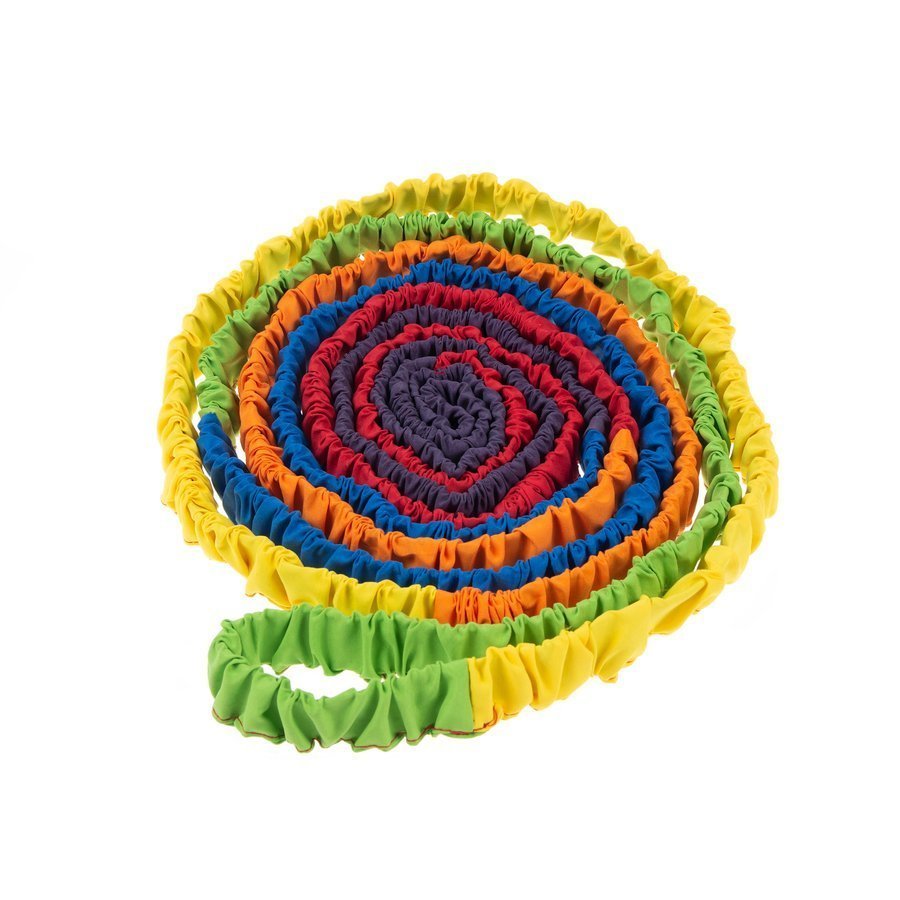 Guma sensoryczna w kolorach tęczy to idealne narzędzie do zabaw w grupie. Pomaga utworzyć koło podczas zajęć, polecana jest w szczególności nauczycielom, opiekunom oraz animatorom jako doskonała pomoc dydaktyczna, pedagogiczna i animacyjna. Dzieci uwielbiają zabawy z gumą sensoryczną! Sprawdzi się zarówno przy małych, jak i większych grupach dzieci.
