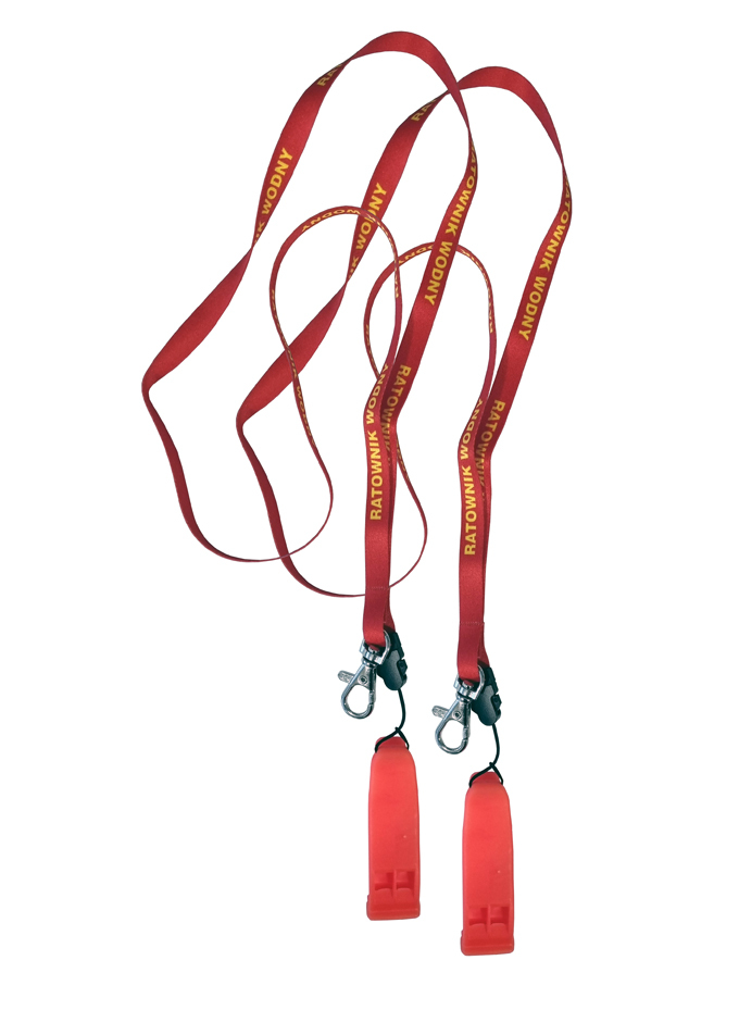 - wygodna, wąska smycz RATOWNIKA WODNEGO zakończona pętlą oraz karabinkiem do zawieszenia gwizdka oraz np. identyfikatora