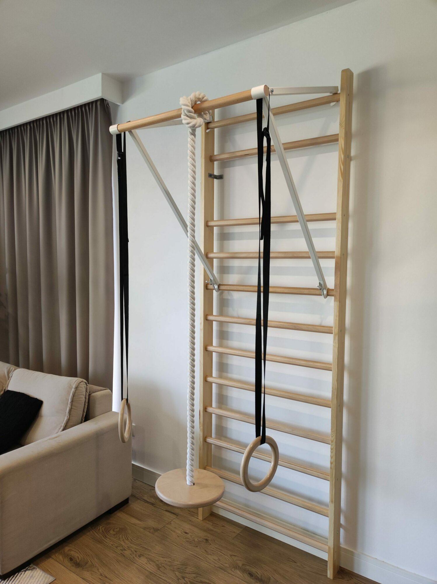 Drewniane obręcze idealnie łączą się z drabinkami drewnianymi wyposażonymi w drążki, tworząc miejsce do bezpiecznej zabawy połączonej z aktywnością fizyczną. Wykonane są z wysokiej jakości materiałów.