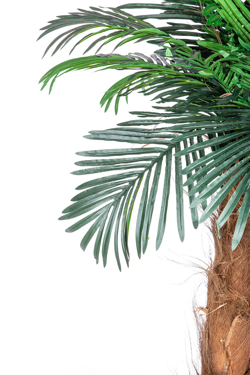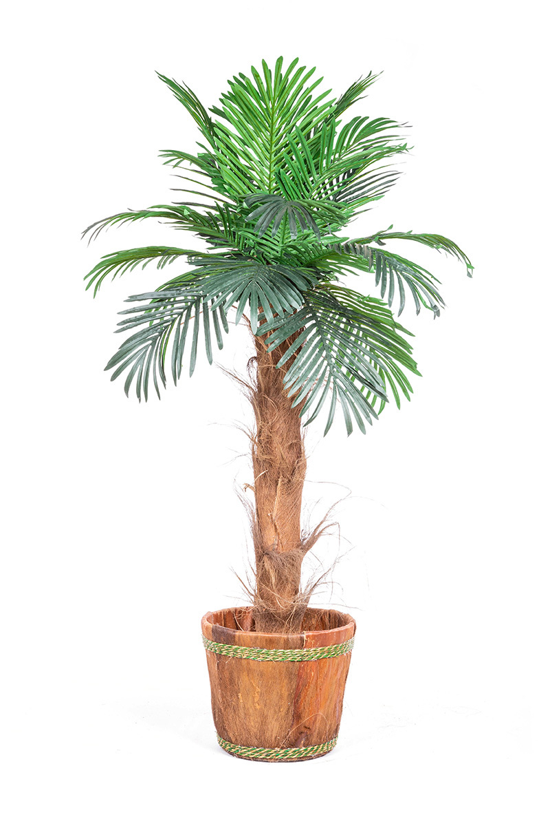 Sztuczne drzewko palmowe to świetny dodatek do Twojego domowego spa lub basenu. Uatrakcyjni też każdą powierzchnię w siedzibie firmy lub sklepie. Pień o długości 100/130 cm obłożony jest naturalną korą palmową. Koronę stanowi 16 sztucznych, zielonych liści.