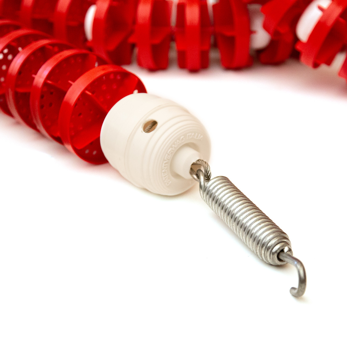Oferowane przez nas rozwiązanie jest kompletnym, profesjonalnym zestawem. Wytrzymała linka ze stali nierdzewnej o grubości 4 mm jest uzbrojona w krążki i bojki z wzmocnionego tworzywa poddanego działaniu utwardzaczy fotochemicznych (zabieg ten wydatnie poprawia odporność na działanie chemicznych środków uzdatniających wodę basenową oraz promieniowania UV). Za właściwe napięcie liny i efekt "łamania" fal odpowiada napinacz w formie tzw. śruby rzymskiej.