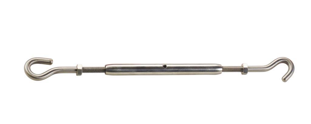 Napinacz liny torowej w postaci śruby rzymskiej solidna prosta konstrukcja wykonana ze stali nierdzewnej AISI 316 umożliwiająca szybki montaż i demontaż liny torowej. W zestawie akcesoria zaciskowe na linkę stalową.