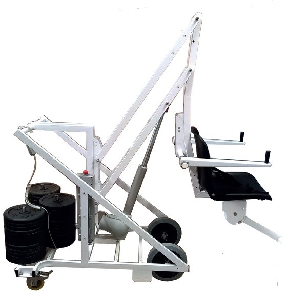 Podnośnik basenowy dla niepełnosprawnych lub osób o ograniczonej sprawności fizycznej. Unikart 300 zasilany baterią 24 V.