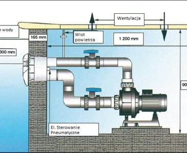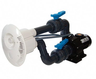 Ten system przeciwprądu jest prosty w montażu. Możliwe jest regulowanie siły strumienia i zasysania powietrza na dyszy średnicy 40 mm. Regulowanie odbywa się kierunkowo. Dysza ssąca i przełącznik pneumatyczny są umieszczone w przedniej osłonie urządzenia.