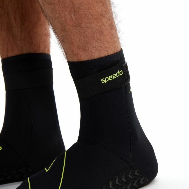 Swim Socks od Speedo to niebanalne połączenie skarpet i butów do wody stworzone z myślą o aktywnych osobach, które cenią sobie praktyczne rozwiązania w trakcie uprawiania zimowych sportów. Wykonane z neoprenu Yamamoto o grubości 3 mm zostały zaprojektowane, aby zapewnić ciepło podczas pływania na świeżym powietrzu. Dzięki dopasowanej konstrukcji wokół kostki, skarpetki neoprenowe Speedo mogą być noszone z pianką lub bez, a rzep nad kostką z wbudowaną uszczelką gwarantuje stabilne i bezpieczne dopasowanie. Dodatkowo Speedo OW Swim Socks posiadają zewnętrzne szwy, co zapewnia komfort noszenia. Specjalnie wyprofilowana powierzchnia wewnętrzna ułatwia zdejmowanie skarpet, nawet z zimnych stóp.