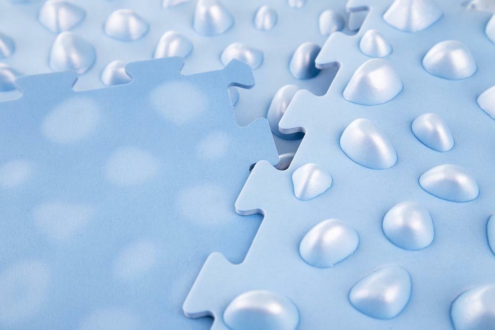 Dzięki specjalnie wyprofilowanym krawędziom maty sensoryczne mogą być ze sobą precyzyjnie łączone, co pozwala w dowolny sposób zmieniać ich rozmieszczenie i rozmiar, w zależności od potrzeb użytkownika oraz rodzaju wykonywanej aktywności. Zestaw mat sensorycznych z wypustkami to produkt, który znajdzie zastosowanie zarówno w warunkach domowych, jak i placówce rehabilitacyjnej czy edukacyjnej.