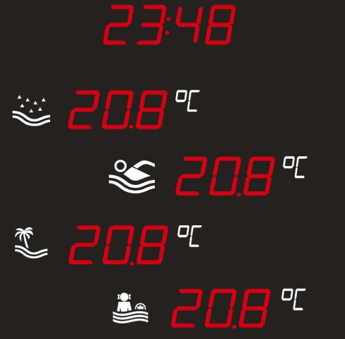Tablica basenowa informacyjna przeznaczona jest do wyświetlania podstawowych informacji związanych z czasem/datą oraz temperaturami. Zazwyczaj przyjmuje się 3 temperatury, a mianowicie temperaturę zewnętrzną, temperaturę wewnętrzną oraz temperaturę wody. W zależności od wymagań ilość wyświetlanych temperatur można zwiększyć np. o temperaturę wody w niecce rekreacyjnej, jacuzzi, itp.