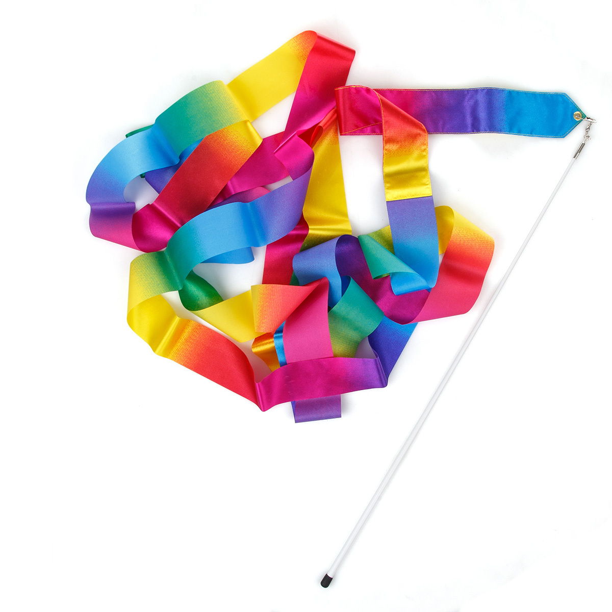 Wysokiej jakości wstążki gimnastyczne 5 m wykonane zgodnie z wytycznymi F.I.G. z jedwabnej satyny, połączone obrotowo z kijkiem z włókna węglowego. Wstążka gimnastyczna to przedmiot, który poza zawodami gimnastycznymi również doskonale sprawdza się podczas zajęć z rytmiki, fitnessu oraz gimnastyki artystycznej zarówno w domu jak i w przedszkolu czy szkole. Uatrakcyjni każdy pokaz taneczny czy występ artystyczny.