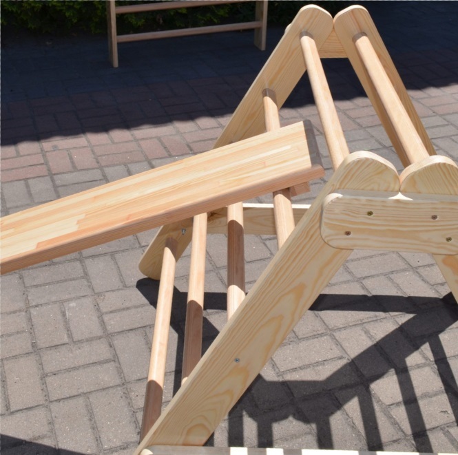 Zjeżdżalnia drewniana, może zostać elementem placu zabaw dla dzieci. Można ją zawiesić na drabince gimnastycznej lub w otworze skrzyni gimnastycznej. Wykonana z wysokiej jakości lakierowanego drewna iglastego.