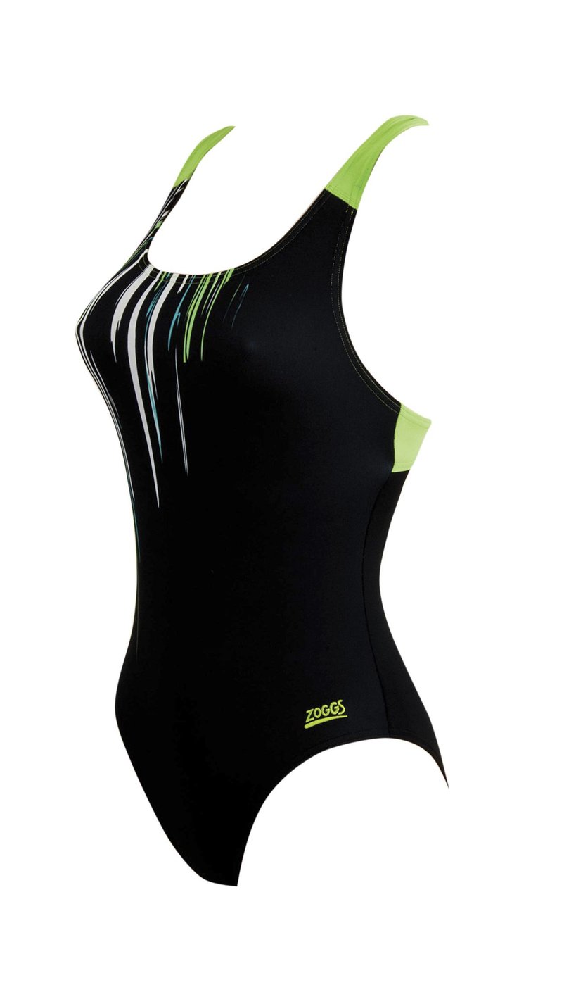 Strój kąpielowy Zoggs Wandina został stworzony z myślą o treningu pływackim i aktywnej rekreacji. Z przodu kostiumu znajduje się oryginalna grafika, a z tyłu szelki o wyrazistym kolorze. Dzięki nim strój utrzymuje się stabilnie na ciele, zapewniając tym samym komfort użytkowania. Produkt został wykonany z wysokiej jakości poliestru, który jest odporny na działanie chloru oraz promieni UV. W związku z tym kostium znajdzie zastosowanie zarówno na basenach zewnętrznych, jak i wewnętrznych.