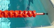 Aby linę łatwiej można było wyciągnąć z wody, można skorzystać ze specjalnego ślizgu – pomocy do wyciągania lin torowych.