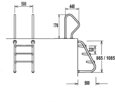 Dedykowana do basenów zagłębionych, prywatnych oraz publicznych. Poręcze wykonane z polerowanej stali nierdzewnej wysokiej jakości AISI 316. Stopnie posiadające budowę o właściwościach antypoślizgowych. Drabinka dzięki odchyleniu od ściany basenu spełnia funkcję odciążającą stawy. Dostarczona w komplecie z kotwami mocującymi. Dostępny jest tylko model 4 stopniowy o wysokości 1085 mm.