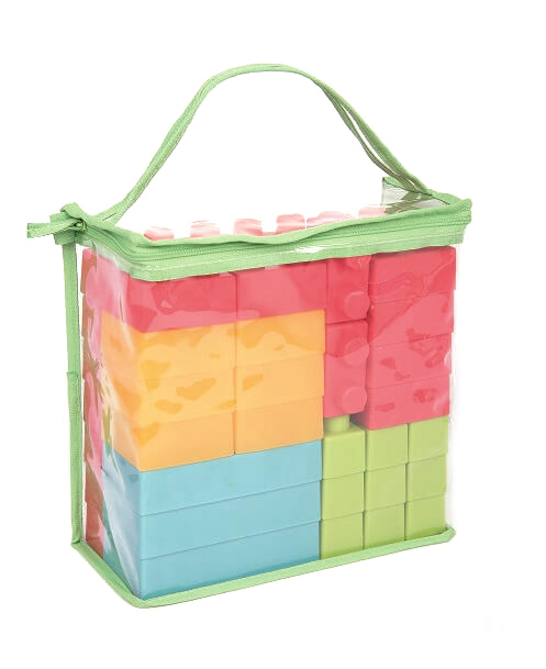 Miękkie, elastyczne plastikowe klocki konstrukcyjne, idealne dla młodszych dzieci, aby zaangażować się w pomysłowe prace budowlane. Kawałki pasują do siebie starannie i są łatwe do rozerwania dla małych dłoni. Różnorodność kształtów i rozmiarów w zestawie umożliwia zbudowanie szerokiej gamy wzorów.