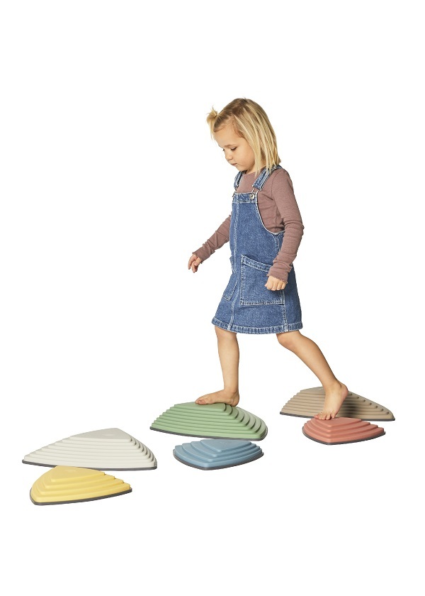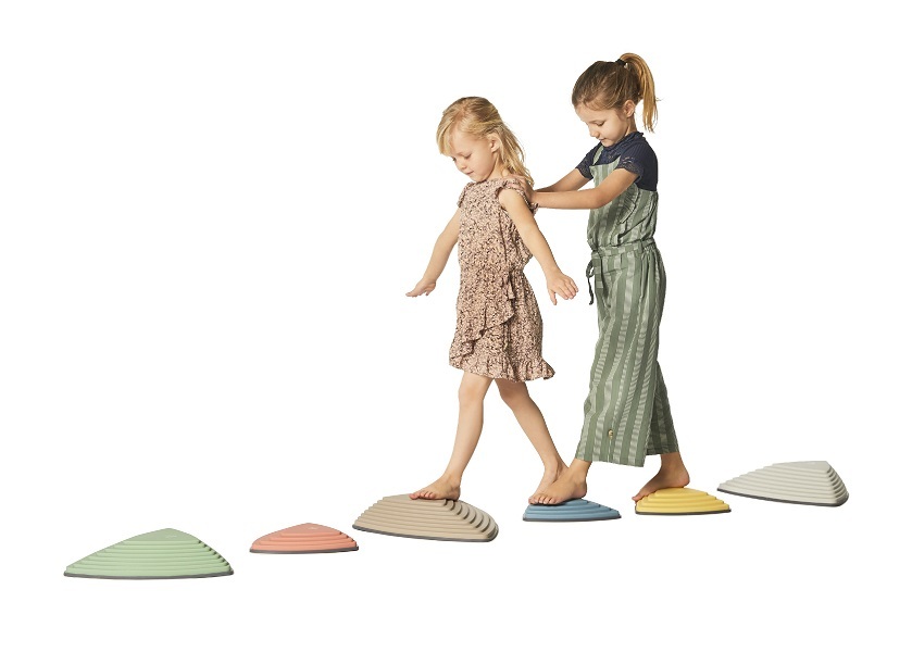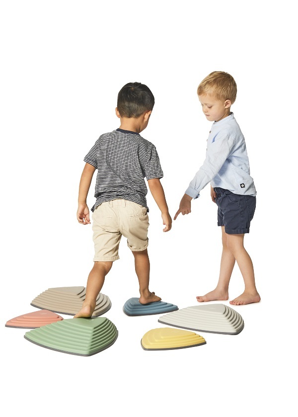 Zestaw kamieni rzecznych marki Gonge w nowej pastelowej kolorystyce. Produkt pozwalający w formie zabawowej rozwijać koordynację ruchową czy zdolności równoważne. Inspirowane kamieniami rzecznymi charakteryzują się unikalnym kształtem - bok każdego elementu różni się kątem nachylenia, a w konsekwencji stopniem trudności, dzięki czemu możliwe jest układanie różnego rodzaju ścieżek dostosowanych do umiejętności użytkowników. Zadaniem osób ćwiczących jest skakanie z jednego kamienia na drugi bez dotykania podłogi. Każdy kamień posiada u podstawy gumowaną krawędź, co gwarantuje antypoślizgowość i dodatkowo zabezpiecza podłoże przed porysowaniem. Istnieje możliwość układania poszczególnych elementów jedne na drugich, co ułatwia ich przechowywanie i pozwala zaoszczędzić miejsce. Zabawka dla dzieci Gonge River Stones to produkt bardzo uniwersalny, który dzięki swoim właściwościom znajdzie zastosowanie zarówno w domu, jak i placówce edukacyjnej czy rehabilitacyjnej.