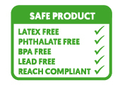 - Wszystkie produkty wykonane są z wysokiej jakości PVC, zgodnie z rozporządzeniem REACH - EC 1907/2006 regulującym kwestie stosowania chemikaliów (nie zawierają ftalanów, lateksu, ołowiu czy BPA).