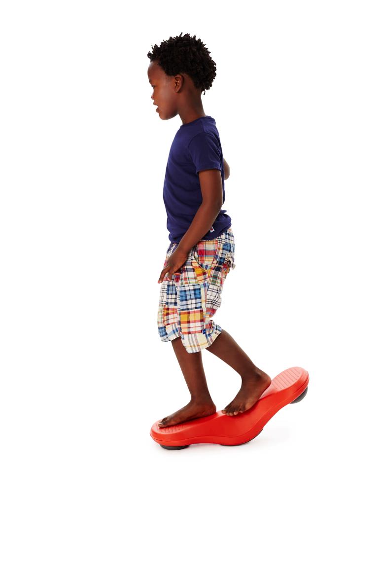 Huśtawka Gonge posiada antypoślizgową powierzchnię, a także elastyczne, gumowe elementy na spodzie, dzięki czemu umożliwia wykonywanie dynamicznych ruchów przy zachowaniu maksymalnego poziomu bezpieczeństwa. Specjalne wyprofilowanie oraz pokrycie kluczowych elementów miękką gumą chroni przed uszkodzeniem zarówno stopy czy palce dziecka, jak i powierzchnię, na której wykonywane są ćwiczenia.Huśtawka umożliwia m. in. wykonywanie ćwiczeń równoważnych u dzieci, dzięki czemu idealnie sprawdzi się zarówno w warunkach domowych jak i placówce edukacyjnej czy rehabilitacyjnej.