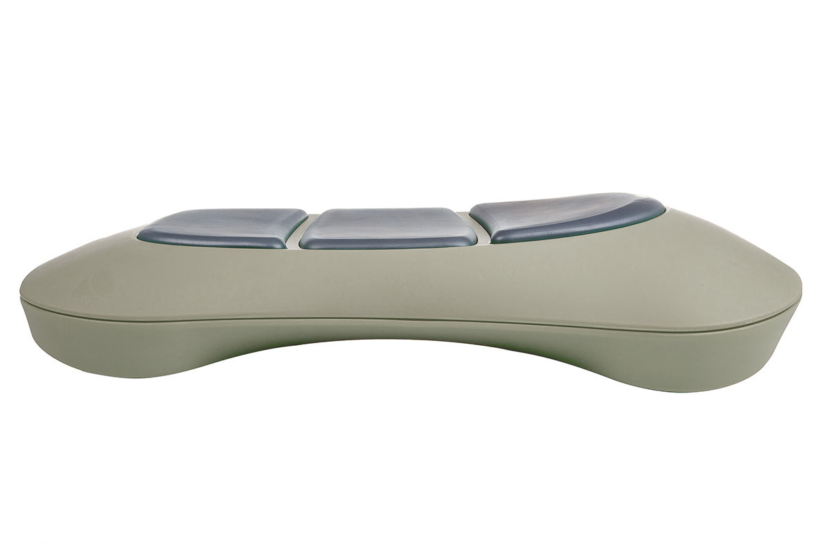 Podwyższenie z przodu Gonge Floor Surfera wspiera kość ogonową dziecka podczas siedzenia i kość mostkową podczas leżenia.