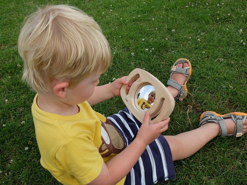 Poręczne lusterko akrylowe do autorefleksji, do wspólnej gry grupowej i odgrywania ról. Lusterko mieści się się w ramce z wygodnymi uchwytami wykonanej z litego drewna kauczukowego, przez co jest zarówno niezwykle wytrzymałe, jak i łatwe do trzymania i manipulowania nim przez młodzież.