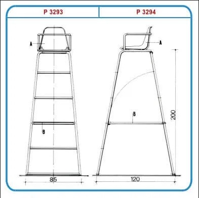 Siedzisko przeznaczone dla ratowników lub sędziów w sportach wodnych. Doskonała stabilność, konstrukcja wykonana z rury stalowej nierdzewnej AISI 304 o grubości 2 mm i średnicy aż 45 mm. Wygodne, kubełkowe siedzisko wykonane z polipropylenu, wysokość 200 cm.