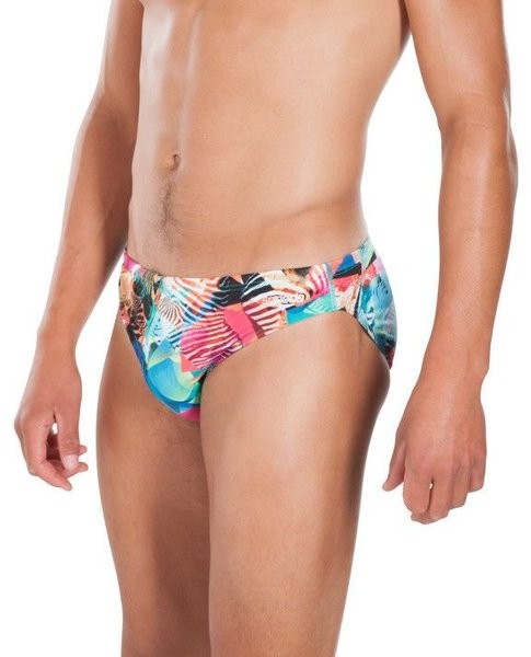Klasyczne slipy kąpielowe z żywym multikolorowym motywem. Wykonane z zastosowaniem technologii stosowanej wyłącznie przez Speedo Endurance+®. Sprawdzą się na plaży oraz na pływalniach zamkniętych i otwartych. Szybkoschnący materiał o wysokiej odporności na przetarcia, działanie chloru i utratę koloru zapewnia mechaniczną trwałość, a wysoka elastyczność oraz sznurek i gumka w pasie ułatwiają dopasowanie i gwarantują wygodę.