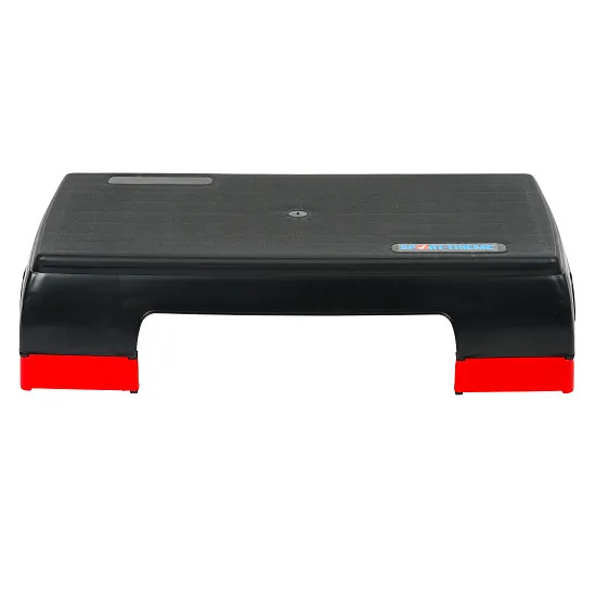 Step Sport-Thieme ze stopkami umożliwia regulację wysokości w zakresie 5 cm. Wystarczy przymocować przystawki do dwóch dolnych stron stepu- w ten sposób można zwiększyć intensywność ćwiczeń, a Twój trening stanie się jeszcze bardziej efektywny i wymagający. Gdy czerwone części podstawy nie są używane, można je po prostu przechowywać pod urządzeniem.
