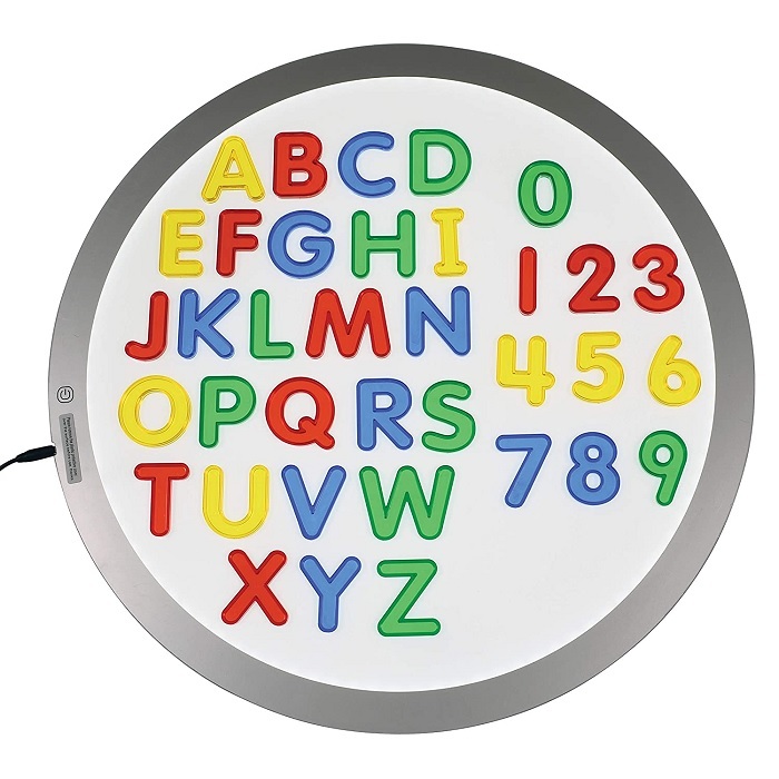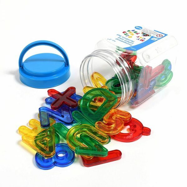 Zestaw wielkich liter oraz liczb, wykonanych z transparentnego plastiku w różnych kolorach, sprawdzą się zarówno do pierwszego poznawania liter oraz licz, ale także dla starszych dzieci do nauki tworzenia słów, literowania oraz liczenia. Idealnie sprawdzą się jako dodatek do świecących tablic, piaskownic z piaskiem kinetycznym. Zabawa nimi może wpierać rozwój sensoryczny dziecka. Figury mają 5 cm oraz podniesione brzegi, co ułatwia chwytanie.